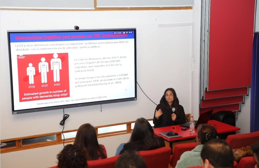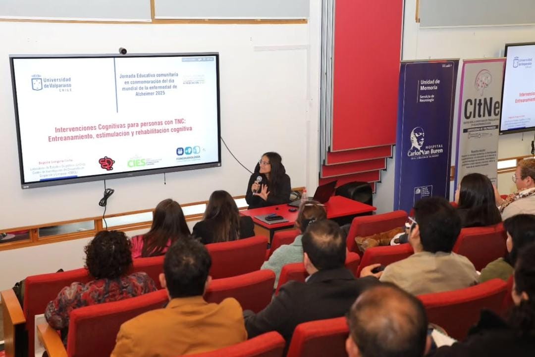 El pasado martes 23 de septiembre, la Dra. Begoña Góngora, académica de la Facultad de Medicina de la Universidad de Valparaíso, participó como expositora en la Jornada "Intervenciones Psicosociales en Demencia Basada en Evidencia", organizada por la Unidad de Memoria del Hospital Carlos Van Buren, en el marco de la conmemoración del Día Mundial del Alzheimer.