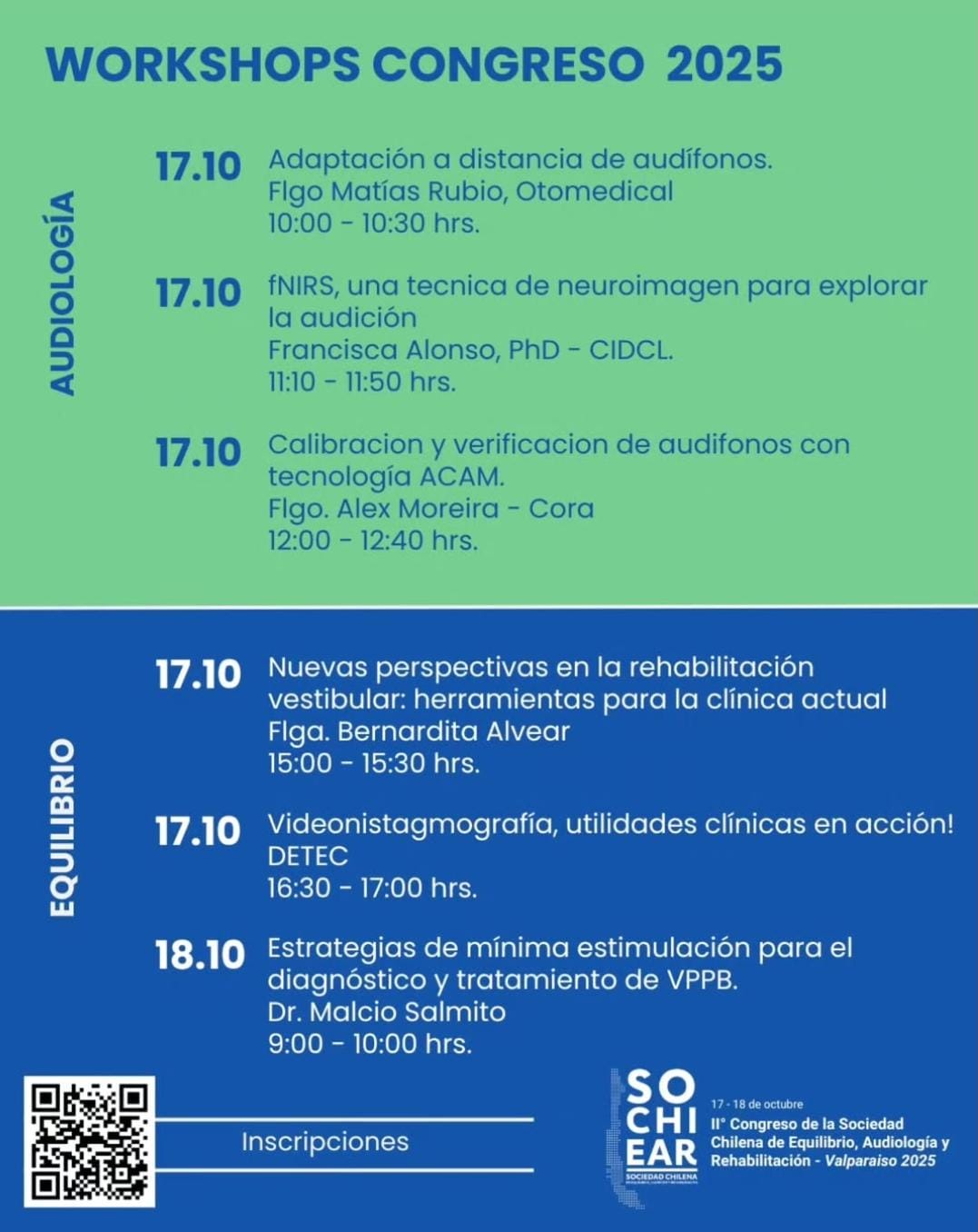 Workshops del II Congreso de la Sociedad Chilena de Equilibrio, Audiología y Rehabilitación (SOCHIEAR) 2025