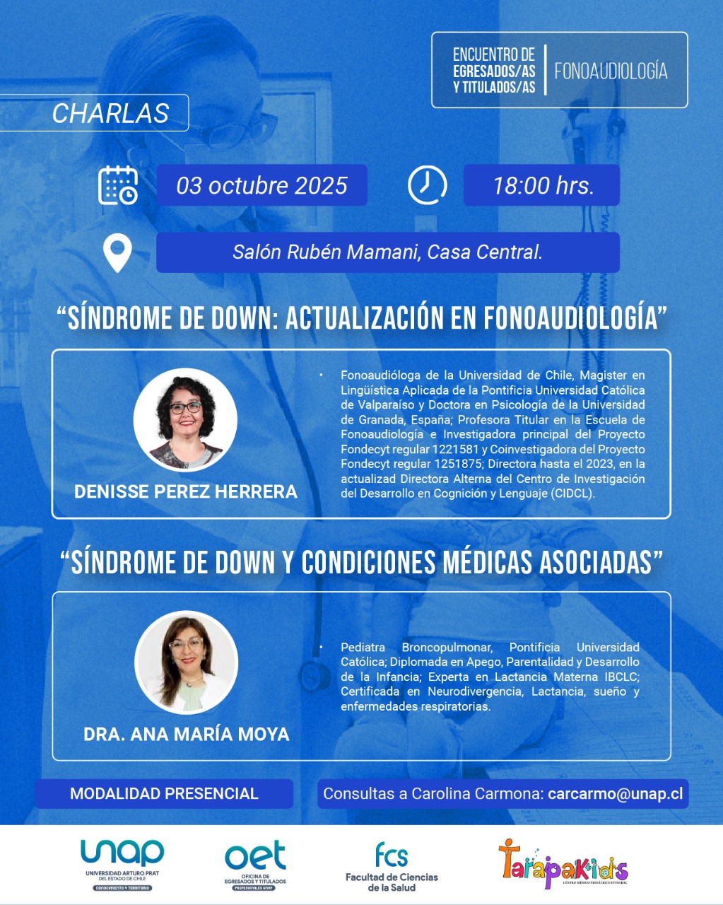 En el marco del Proyecto Fondecyt Regular N.º 1221581, el pasado viernes 3 de octubre, la Dra. Denisse Pérez Herrera, directora alterna del Centro de Investigación del Desarrollo en Cognición y Lenguaje (CIDCL) y académica de la Escuela de Fonoaudiología de la Facultad de Medicina de la Universidad de Valparaíso, dictó una charla dirigida a egresados de la Escuela de Fonoaudiología de la Universidad Arturo Prat, Casa Central Iquique.