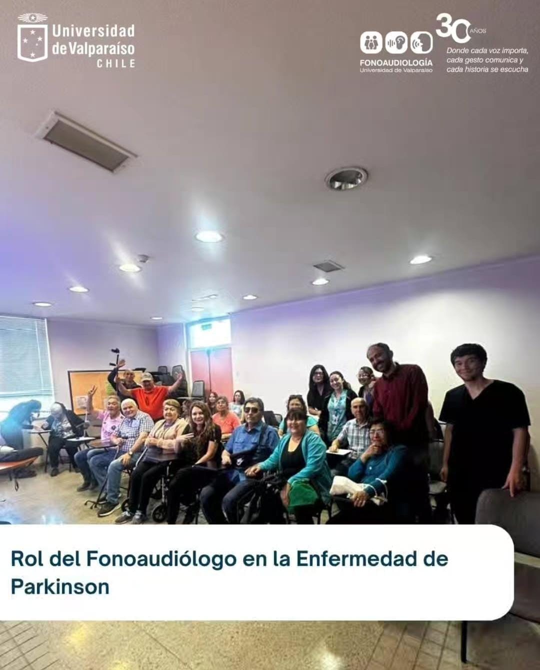 El Fonoudiólogo Andrés Aguirre Muñoz, académico de la Escuela de Fonoaudiología - Sede San Felipe, de la Universidad de Valparaíso y estudiante del Magíster en Neuropsicología de los Trastornos Cognitivos en Personas Mayores, expuso en el módulo "Cognición" de la Charla: “Rol del Fonoaudiólogo en la Enfermedad de Parkinson".