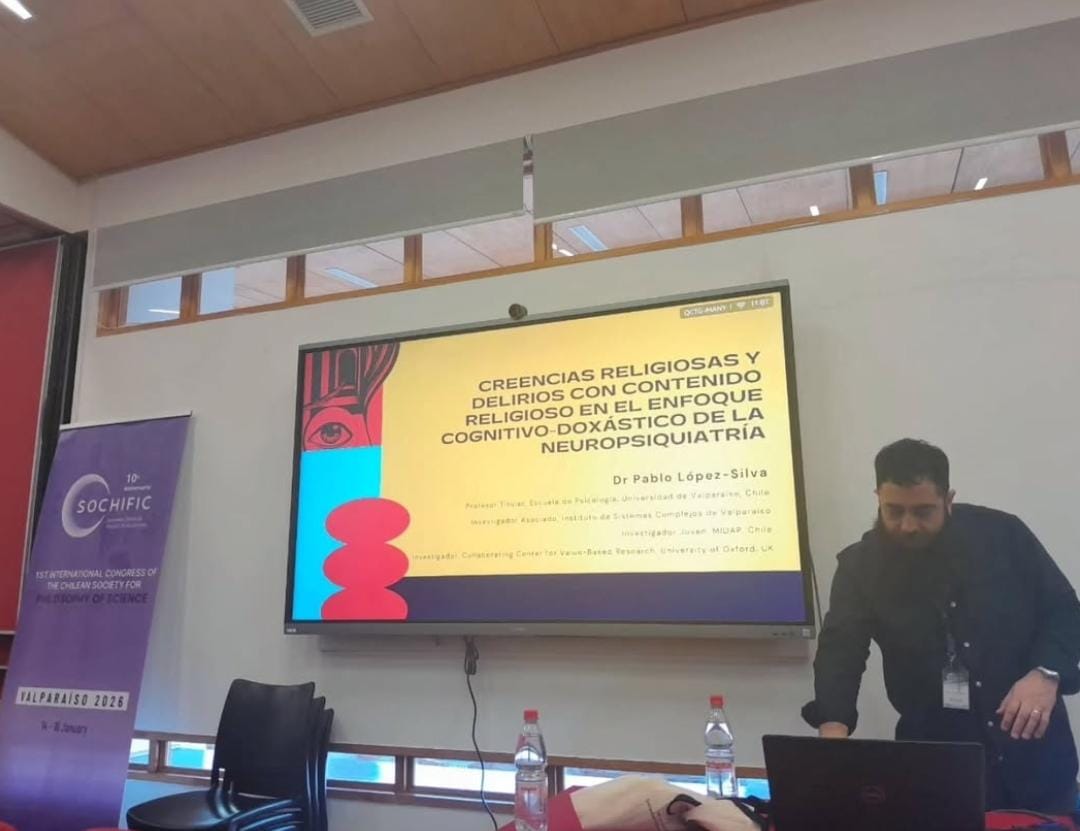El Dr. Pablo López-Silva, profesor titular de la Escuela de Psicología UV, Investigador Responsable del CIDCL, International Partner del Collaborating Centre for Value-Based Research (University of Oxford, UK), Investigador asociado al MIDAP, Director de la Red Latinoamericana de Filosofía de la Psiquiatría y Director del Proyecto FONDECYT N°1221058 "La Arquitectura del Delirio", lideró con excelencia el pasado viernes 16 de enero, el Simposio: "Controversias metodológicas y conceptuales en la filosofía de la psiquiatría contemporánea", en el 1er Congreso Internacional de la Sociedad Chilena de Filosofía de las Ciencias (SOCHIFC).
