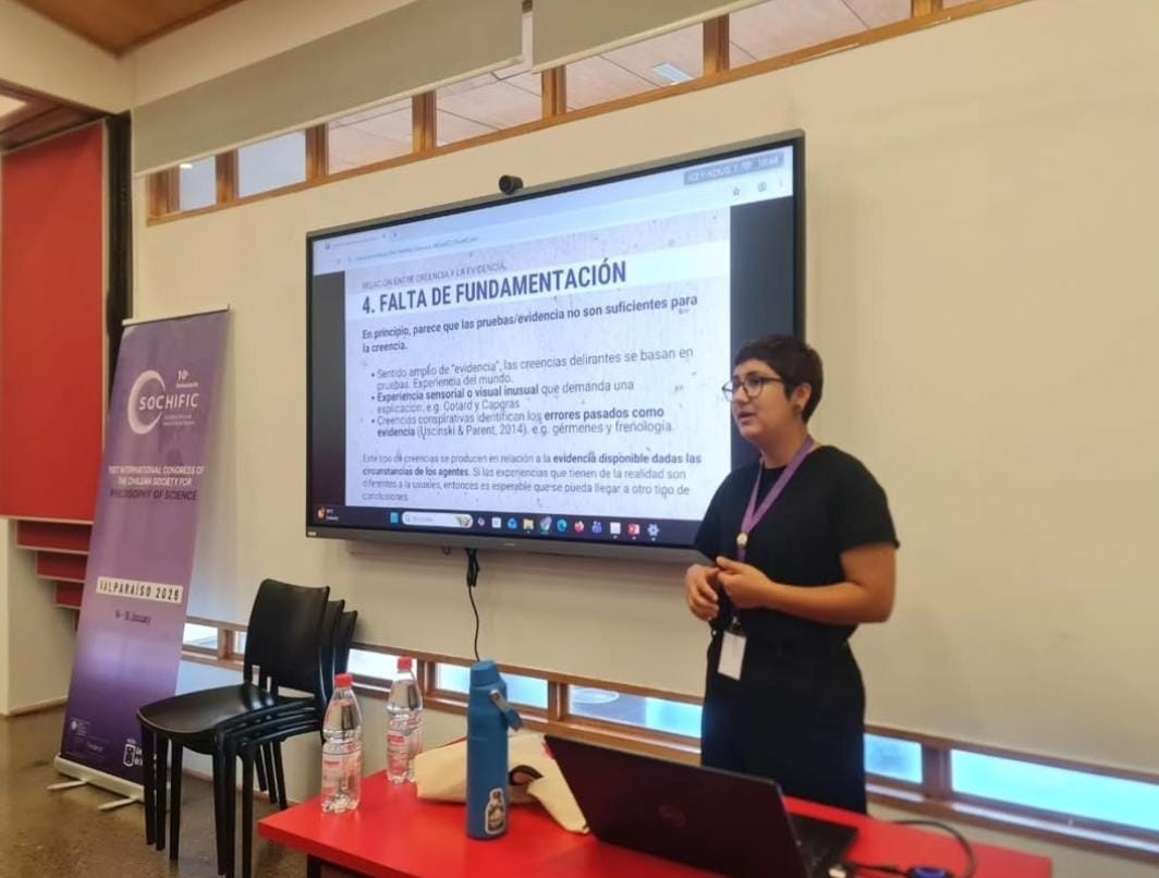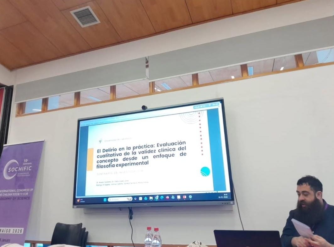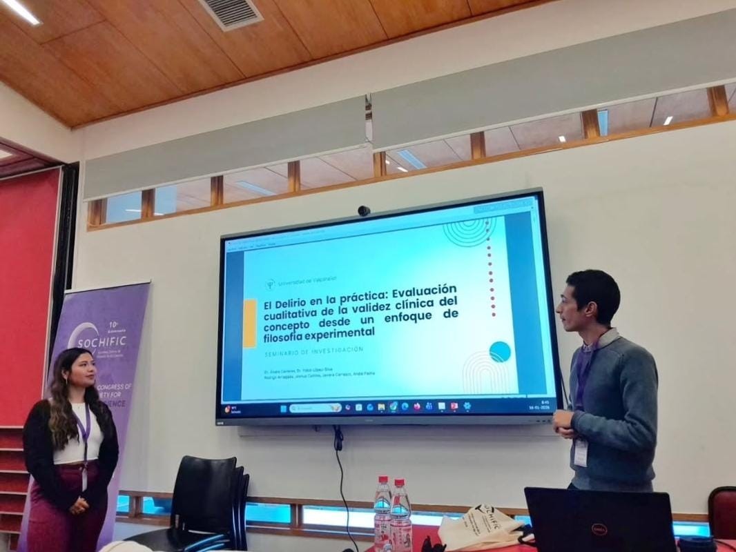 Para complementar el debate, los Estudiantes de Psicología y Tesistas del Dr. Pablo López-Silva —Andie Palma, Javiera Carrasco, Joshua Cadima y Rodrigo Arriagada— en colaboración con el Dr. Álvaro Cavieres, (Co-investigador del proyecto "La Arquitectura del Delirio"), presentaron "Del concepto al contexto: nuevas herramientas filosóficas para la psiquiatría clínica". Esta ponencia destacó la transición desde abstracciones conceptuales hacia aplicaciones prácticas en la clínica psiquiátrica.